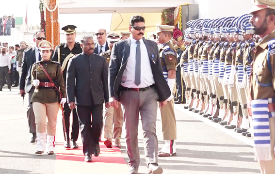 The first Lieutenant Governor Girish Chander Murmu was given the red carpet welcome and he inspected the ‘guard of honour’.