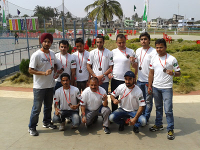 Members of J&K Roller Hockey team posing for a group photograph after winning bronze medal in 50th Senior National Championship.