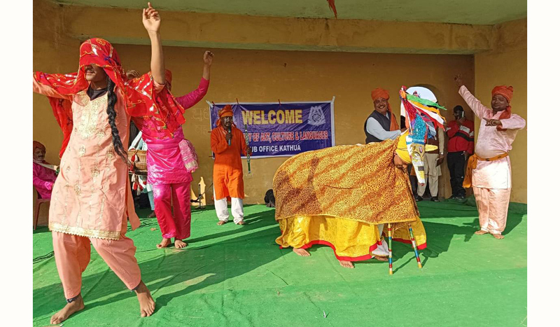 SAMBA, Mar 8: The Sub Office of Jammu & Kashmir Academy of Art, Culture, and Languages (JKAACL) organized a music and dance programme at Channi Jassu, here today in which over 100 artists showcased their talent.