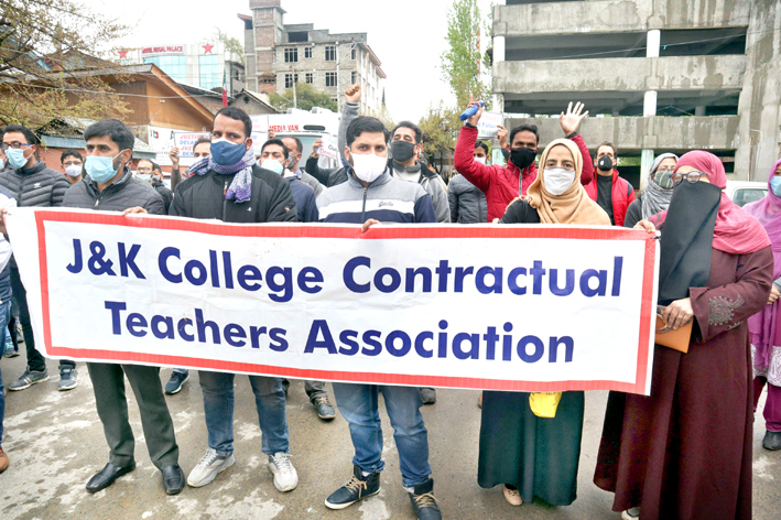 They said that the college contractual teachers are working on an academic arrangement basis in different colleges of the Kashmir Division for the last 20 years.