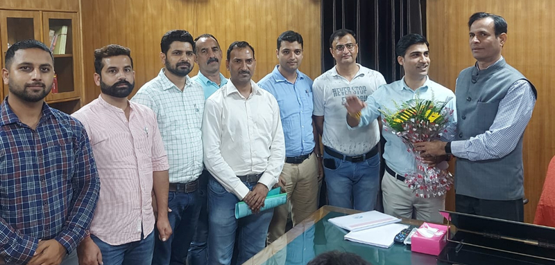 JAMMU, Sept 28: The Jammu and Kashmir Electrical Engineering Graduates Association (JKEEGA) under the chairmanship of Sachin Tickoo, president JKEEGA, Ashok Kumar Dubey, Rajeshwar Jamwal, (senior vice presidents), Sunil Gupta, Jahangir Ahmed, Gulshan Bhagat, (vice presidents) and others today called on Principal Secretary, Power Development Department H. Rajesh Prasad at Jammu today.