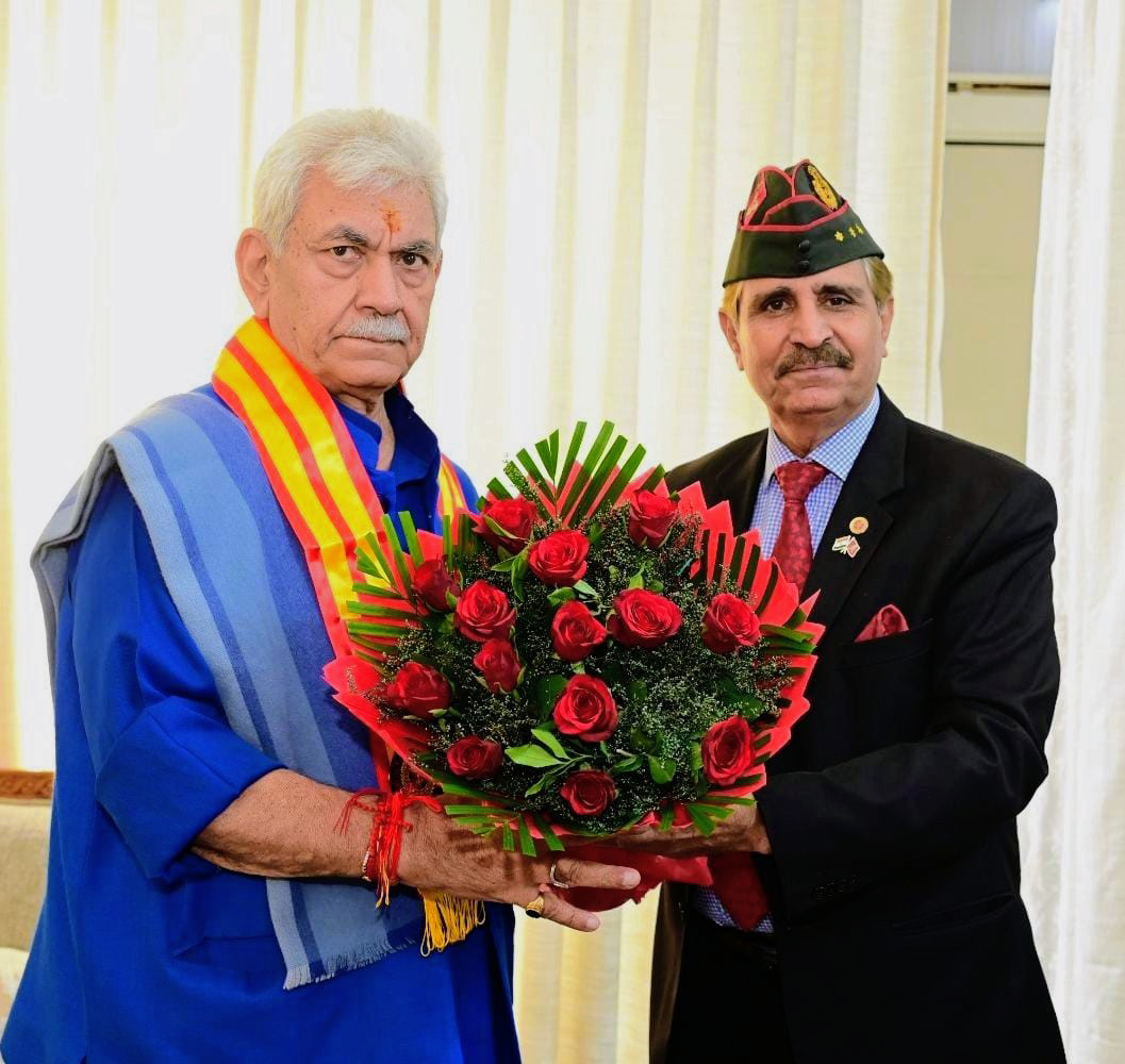 Jammu, Dec 4: President J&K Ex Services League, Lt Gen Rakesh Kumar Sharma, met Manoj Sinha, Lt Governor of J&K UT today and projected various issues pertaining to the welfare of Ex-servicemen.