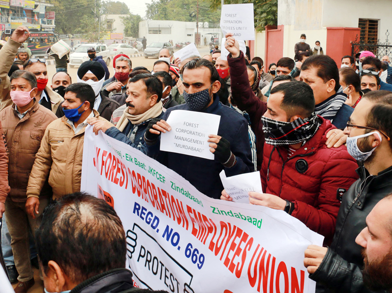 JAMMU, Dec 15: Jammu and Kashmir Forest Corporation Employees Forum (JKFCEF) took out protest rally and also suspended work from 10 am to 3 pm here today.
