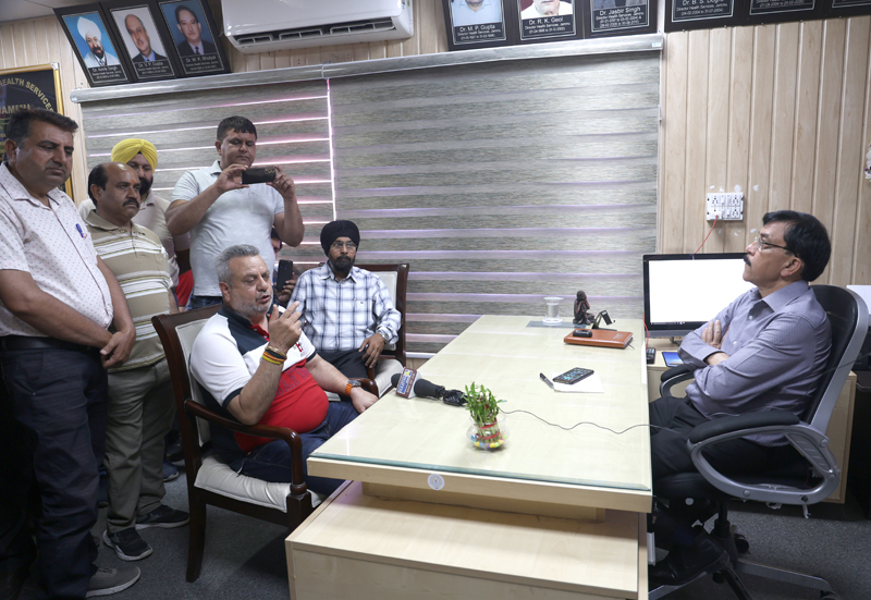JAMMU, May 23: A deputation of Jammu Kashmir Medical Employees Federation (JKMEF) under the chairmanship of Sushil Sudan, President JKMEF and member PCI, met the newly appointed Director Health Services, Jammu Dr Rajeev Kumar Sharma and put forth certain burning and urgent issues of the employees of the Health Department.