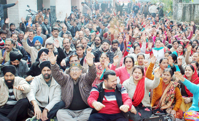 A large number of employees from all over the Jammu province participated in the dharna to press for their demands which include doing promotion strictly in accordance with seniority, clearance of DPC at par with Government Medical College/Drug & Food Control Organization on the pattern of Executive Order passed by the Administrative Department till the SRO-20 (Recruitment Rules) is modified and implementation of amendment of SRO 20 dated 24-02-1992 which is pending since more than 15 years.