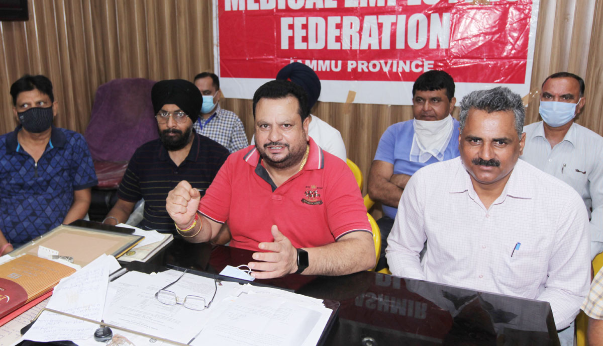 JKMEF president Sushil Sudan addressing a press conference at Jammu. -Excelsior/Rakesh