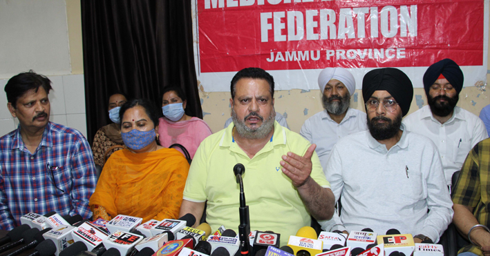 Those present in the press conference were Parfulat Singh (general secretary, JKMEF), Jarnail Singh (working president, J&K Government Pharmacists Association), Neelam Kumari (president, J&K Female Multipurpose Welfare Association), Mohd Nadeem (president, J&K Sanitary Inspector Employees Association), Pawan Singh Jamwal (president, J&K Basic Health Employees Association) and many others.