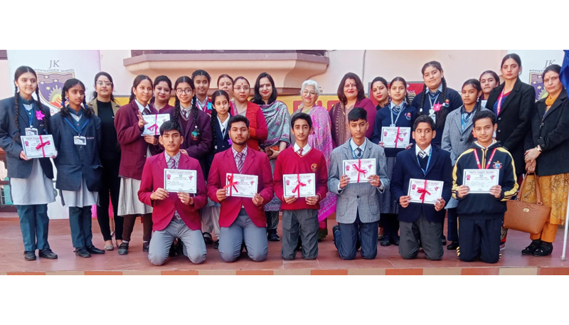The first prize was bagged by two schools Elite Public High School and JK Montessorie. The second prize went to Humanity Public School while Alexander Memorial School stood third in the competition. The winners were felicitated by Judges and the Principal of the School. Earlier, the programme started with lighting of traditional lamps by all the guests present there followed by a welcome address given by Aarti Gupta Principal JKMS.