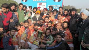 JAMMU, Dec 20: Defeating Pathankot XI convincingly by (3-1) goals in the Summit clash, Jammu and Kashmir Police (JKP) XI lifted the title trophy of the 3rd Sant Gurbaksh Singh Danna Memorial Hockey Tournament, which concluded at KK Hakhu Astroturf Hockey Stadium, here today.