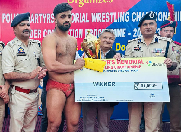 DODA, Oct 26: Jammu and Kashmir Police (JKP) organized a wrestling (Dangal) Championship at Sports Stadium Doda in the memory of Police Martyrs under Civic Action Programme (CAP) here today.