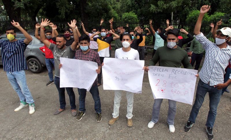 JAMMU, Aug 8: The aspirants of the J&K Police Sub-Inspector (SI) post today staged a protest seeking age bar relaxation in the recently notified around 800 vacancies across the Union Territory of Jammu and Kashmir.
