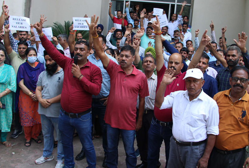 JAMMU, Sept 12: The employees and daily rated workers of Jammu and Kashmir Project Construction Corporation (JKPCC) held a strong protest demonstration today at their Jammu and Srinagar offices and demanded release of their four-month salary.