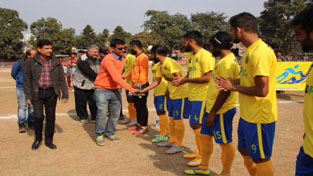 J&K’s International Footballer, Arun Malhotra interacting with players during a Santosh Trophy match at GGM Science College Football ground on Sunday.