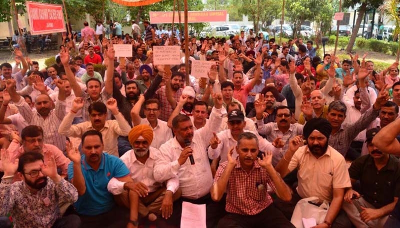 JAMMU, June 8: Jammu Kashmir Teachers Forum (JKTF) under the leadership of its chairman Ganesh Khajuria staged a protest demonstration in the premises of Directorate of School Education Jammu (DSE-J) to express the anguish over the gross violations of transfer policy which is quite visible in the recently issued transfer list of Masters under ATD-2022.