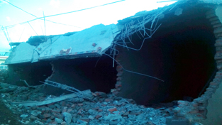 An unauthorised shop which was demolished by JMC at Roop Nagar on Monday.