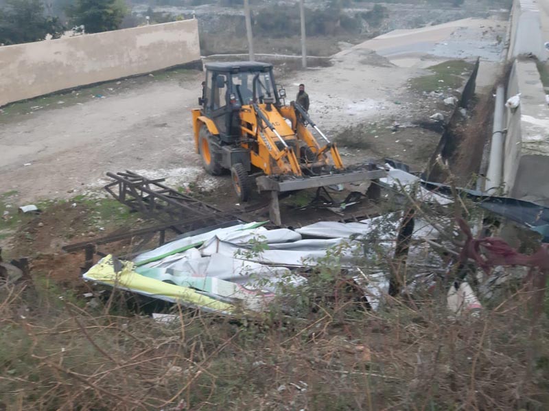 The removed structures were in violation of the provisions of J&K Municipal Corporation Act 2000. A handout of JMC quoted the Advertisement Policy 2010 to state that no person except licensed or registered advertisers or agencies is allowed to undertake the display of advertisement on behalf of others without prior permission of Commissioner.