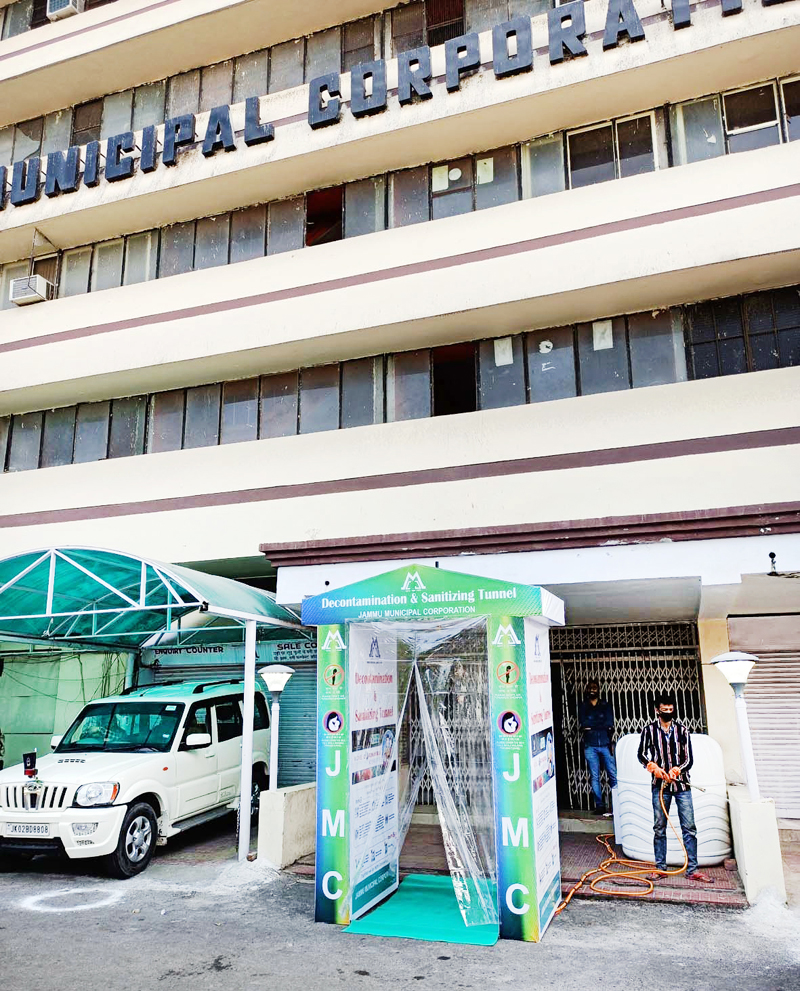 JAMMU, Apr 11: In its endeavour to fight against Covid-19 Pandemic, on the directions of Avny Lavasa, Commissioner, Jammu Municipal Corporation (JMC) has successfully installed five more disinfectant tunnels at various locations in Jammu city area these include Government Chest Disease Hospital, Bakshi Nagar Jammu, Government, Hospital Sarwal, Government Psychiatric Disease Hospital, Yatri Bhawan & JMC Town Hall Complex, Jammu so as to provide protection to the doctors, paramedical staff & health care workers and employees engaged in emergency services to fight against COVID -19 Pandemic.