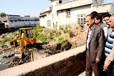 JAMMU, Feb 23: Joint Commissioner (A), Jammu Municipal Corporation, RS Jamwal, today visited various areas of Gandhi Nagar constituency and inspected desilting work being taken up by the  Chief Transport Officer, JMC, on the directions of JMC Commissioner, Mandeep Kaur.