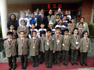 The students felicitated by the School Management  for their hard work and dedication included Aarhaan Mahajan(gold), Aadya Sambyal (silver), Arundev Singh  (bronze), Dhairya Arora (gold), Naman Sharma (silver) , Nitika Singh Langeh (bronze), Esha Joshi (gold), Abhya Sharma (silver), Parthi Gupta (bronze), Samyak (gold), Vyom Kumar (silver), Rohan K. Mohit (bronze) Uditi Verma (gold), Dhananjay Singh (silver), Ayushi Agarwal (bronze), Rachit Hedge (gold),  Daksh Sharma  (silver), Aniran Saraf (bronze), Prachi Jasrotia (bronze), Prabnoor Singh (gold), Harkirat Kaur Rainu (silver), Kushagra (bronze), Akshit Gupta (gold) Arya Abrol (silver), Shaan-ul-Haque (bronze), Navdeep Singh (gold), Ashutosh Shukla (silver), Samridhi Sajotra (bronze), Aakanksha Sharma (gold), Kunal Gupta (silver) and Abhijit Kumar Arora (bronze).