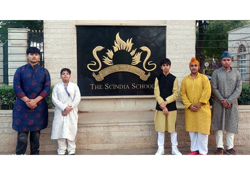 Students posing during a programme at Scindia School, Gwalior.