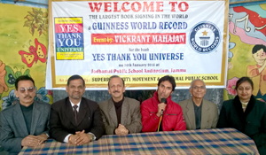 JAMMU, Jan 28: To inspire the students and people of Jammu to think global, Jodhamal Public School is hosting an unprecedented event i.e. Creation of a Guinness World Record by Vickrant Mahajan of Super Positivity Movement, wherein Mr Vickrant will release the latest edition of his bestselling motivational book Yes Thank You Universe to create a new world record for the largest book signing in history.