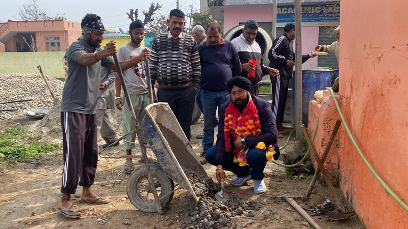District Development Councillor Ramgarh, Sarabjeet Singh Johal starting work of lane-drain in Sarva village of Ramgarh.