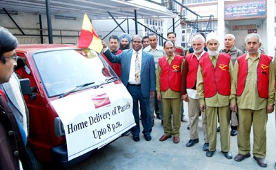John Samuel, Chief Postmaster General flagging off home delivery of parcels at Srinagar on Thursday. By Daily Excelsior - November 2, 2012 Share FacebookTwitterWhatsAppPinterestLinkedinCopy URLTelegramEmailTumblrReddItPrintKoo John Samuel, Chief Postmaster General flagging off home delivery of parcels at Srinagar on Thursday. Follow our WhatsApp channel