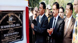 JAMMU, Nov 28: Minister for Urban Development, Nawang Rigzin Jora today laid foundation of vegetable market at Muthi.