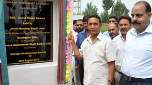 SRINAGAR, Aug 28: Minister for Urban Development and Urban Local Bodies, Nawang Rigzin Jora today laid the foundation stone of Srinagar Development Authority guest house at Bemina for providing accommodation facilities to visiting dignitaries.