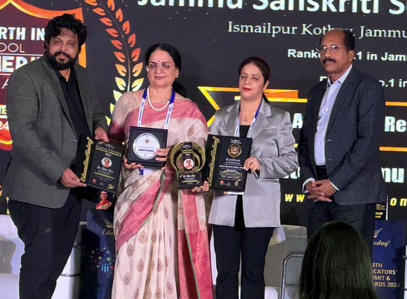 JAMMU, Sept 16: Jammu Sanskriti School (JSS) has been awarded the prestigious title of No. 1 in Jammu & Kashmir for Academic Excellence by Education Today. This recognition, a testament to the school’s dedication to academic brilliance and innovative education, came after a comprehensive survey of over 1,120 schools across North India. Only 298 schools were selected based on rigorous evaluations by a jury, parent feedback, and survey analysis.