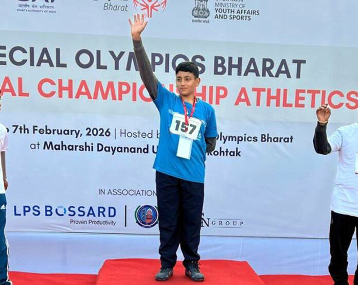 JAMMU, Feb 9: Jammu Sanskriti School Jammu student Kairav won the Gold Medal in standing jump at Special Olympics Bharat National Championship (Athletics), held at Maharishi Dayanand University, Rohtak, Haryana.