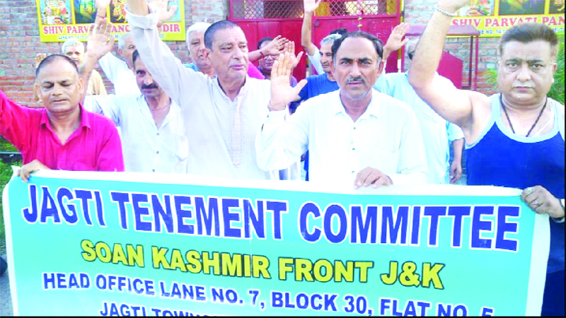 JAMMU, Aug 20: A protest of Jagti Tenement Committee (JTC) and Soan Kashmir Front (SKF) was held today at Jagti township Nagrota Jammu under the chairmanship of its president, Shadi Lal Pandita today.