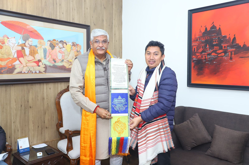 NEW DELHI, Jan 28: Former Member of Parliament from the Union Territory of Ladakh, Jamyang Tsering Namgyal, today called on Gajendra Singh Shekhawat, Union Minister for Culture and Tourism, Government of India, in New Delhi and submitted a series of important representations concerning the preservation of Buddhist education and the sustainable development of tourism in Ladakh.