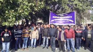 JU non-teaching employees protesting in support of their demands on Tuesday. By Daily Excelsior - December 28, 2016 Share FacebookTwitterWhatsAppPinterestLinkedinCopy URLTelegramEmailTumblrReddItPrintKoo JU non-teaching employees protesting in support of their demands on Tuesday. JU non-teaching employees protesting in support of their demands on Tuesday. Follow our WhatsApp channel