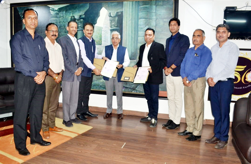 JU VC displaying copy of MoU which was signed for imparting IoT training.
