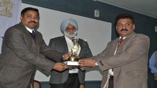 JU VC Prof MPS Ishar and HoD Remote Sensing Prof A S Jasrotia presenting a memento to eminent Scientist Dr Samir Saran at inaugural of a capacity building programme on Tuesday.