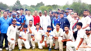 Jubilant Media XI players posing along with chief guest Ankush Abrol after scripting win in opening tie of Integration Cup.