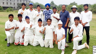Jubilant players of Sidhant CA posing along with former Ranji Trophy Player Sandeep Singh at Gharota on Wednesday.