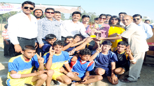 Jubilant winners being presented trophy by the chief guest and other dignitaries at Sports Stadium Udhampur on Saturday. By Daily Excelsior - May 19, 2013 Share FacebookTwitterWhatsAppPinterestLinkedinCopy URLTelegramEmailTumblrReddItPrintKoo Jubilant winners being presented trophy by the chief guest and other dignitaries at Sports Stadium Udhampur on Saturday. Follow our WhatsApp channel