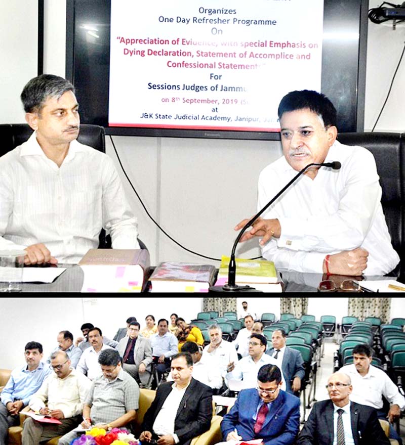 JAMMU, Sept 8: Jammu & Kashmir State Judicial Academy (SJA) organised Refresher programme on topic “Appreciation of evidence with specific reference to Dying Declaration, Accomplice Statement and Confessional Statement” for Session Judges of Jammu Province at Judicial Academy Complex, here today.