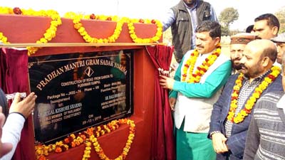 JAMMU, Dec 29: Jugal Kishore Sharma, BJP Member of Parliament (Lok Sabha), along with Bali Bhagat Minister for Health & Medical education, visited Raipur Domana constituency and laid foundation stone of Nadwal to Clay Road and also inaugurated Gharota to Phukhwadi Gumpul under Pradhan Mantri Gram Sadak Yojna.