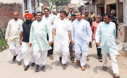JAMMU, June 5: Jugal Kishore Sharma, member Lok Sabha from Jammu -Poonch Parliamentary Constituency and senior BJP leader along with MLA, Chamb, Krishan Lal Bhagat visited Chicken Neck Border Area villages including Narsingh Pura, Pargwal, Garkhal in Pargwal Sector and other adjoining areas in Khour constituency today.