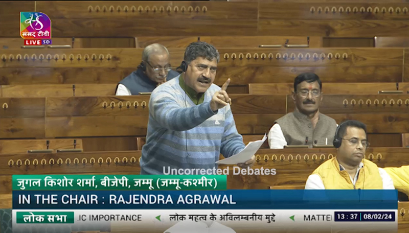 Jugal Kishore Sharma, while participating in a debate in Lok Sabha today informed the House that there are many people and labourers of Jammu and Kashmir who are working in Maharashtra to earn their livelihood are used to travel through trains. Their connectivity mode is train which is economic and affordable to them. He said that there are more than 1000 people who want to travel on daily basis from Jammu to Maharashtra and back but they have to suffer a lot due to non-availability of trains on daily basis.