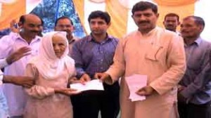 JAMMU, Sept 20: BJP State President & MLA from Nagrota Assembly Constituency, Jugal Kishore Sharma distributed 57 cheques with total amount of Rs. 28 lakh from his Constituency Development Fund (CDF) on the pattern of IAY scheme in a programme organized at Dansal block headquarters in presence of BDO Ishtiaq Ahmed, Sarpanchs and Panchs namely Mohan Lal Mengi, Parkash Singh, Balwan Singh and Sadiq Ahmed.