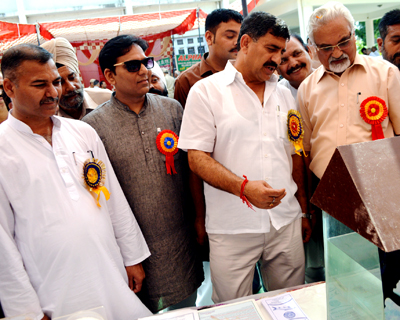 JAMMU, Sept 12: Krishi Vigyan Kendra (KVK) Jammu under the agies of Sher-e-Kashmir University of Agricultural Sciences and Technology (SKUAST) Jammu organized Awareness-cum Farmers Fair on Pradhan Mantri Fasal Bima Yojana at KVK Campus R.S.pura. The programme was inaugurated by Member Parliament Jammu-Poonch Constituency, Jugal Kishore Sharma.
