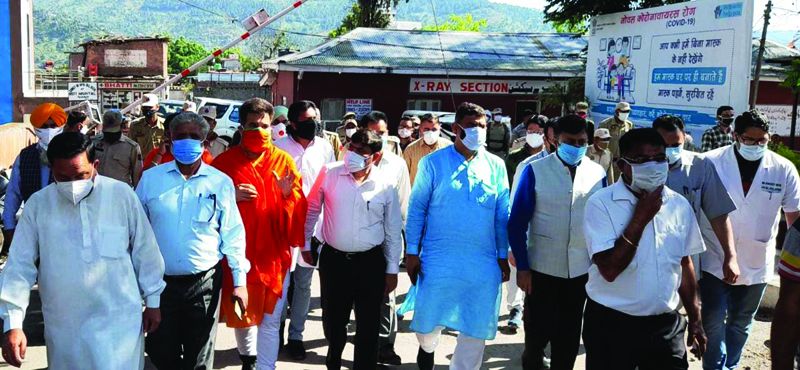 RAJOURI, May 24: Jugal Kishore Sharma, Member Lok Sabha Jammu along with State President BJP Ravinder Raina, former MLCs Vibodh Gupta and Pardeep Sharma, visited Rajouri, Poonch hospitals and enquired about all the medical facilities provided to the Covid-19 positive patients at Sub-District Hospital Sunderbani, Sub-District Hospital Nowshera, Government Medical College Rajouri and District Hospital Poonch.
