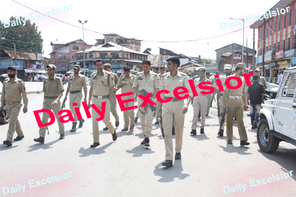 July- 31, 2014- SRINAGAR: Senior police officers inspecting the spot   after militants shot from point blank range on Nazir Ahmad a private Security officer of Govt.SMHS hospital in Srinagar ants. Nazir was purchasing medicine from a drug store outside Govt.SMHS hospital near Police station in Karanagar Srinagar on Thursday. Nazir was a retired BSF man before joining private security. Photo/Mohd Amin War