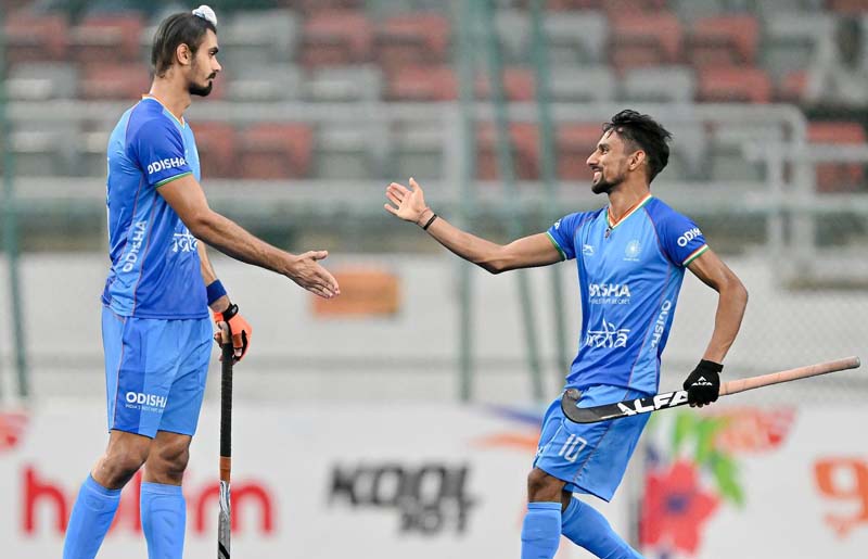 India, who had lost to France in the bronze-medal match in the last edition in 2021 in Bhubaneswar, made a strong start with Hundal scoring in the first quarter off a penalty corner. The Indians continued their domination by pumping in two goals in the second quarter through Hundal and Amandeep — both field goals — as they were 3-0 up at the half time.