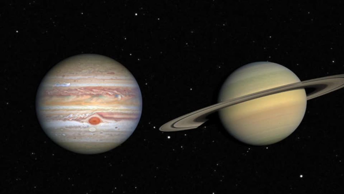 Astronomers say so-called conjunctions between the two largest planets in our solar system aren’t particularly rare. Jupiter passes its neighbour Saturn in their respective laps around the sun every 20 years.
