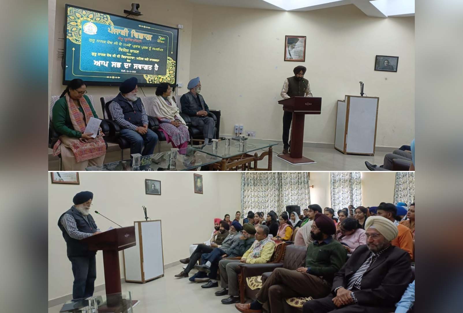 The program, expertly compeered by Dr. Pritam Singh, Assistant Professor in the Punjabi Department, encouraged students to absorb timeless lessons from Guru Nanak Dev Ji. Dr. Harjinder Singh and Dr. Harpreet Kour elaborated on the relevance of Guru Nanak Dev Ji’s wisdom.